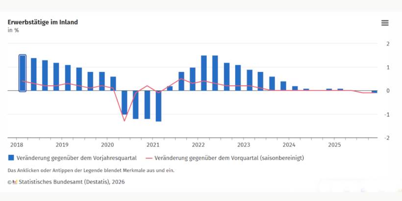 DESTATIS: Erwerbstätigkeit im 4. Quartal 2025 leicht rückläufig